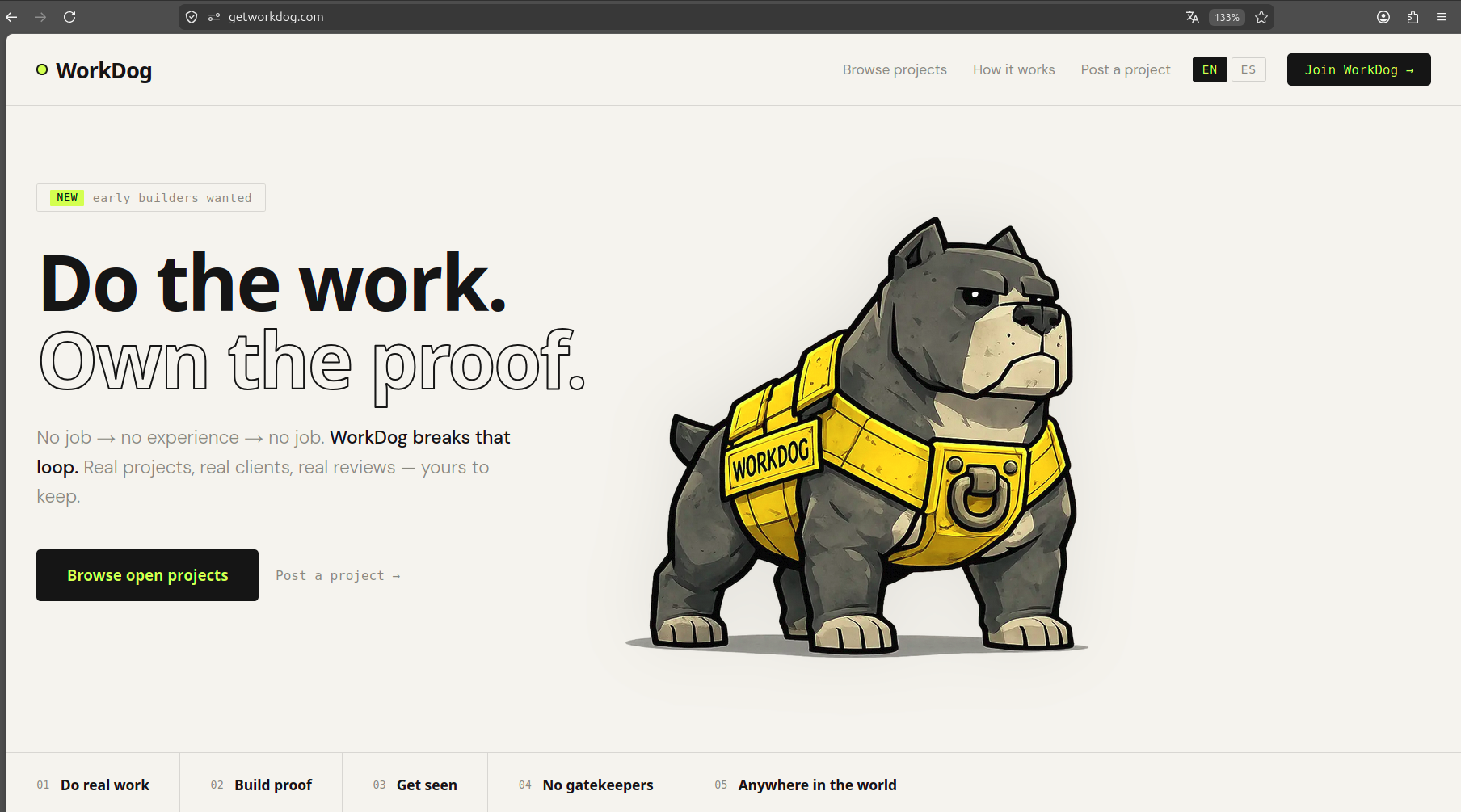 A two-sided platform: small businesses and individuals post real projects, and early-career people — especially those in ML, deep learning, and computer work being left out by current tech trends — take them on for experience and a verifiable reputation. No salary required. Just proof of work.